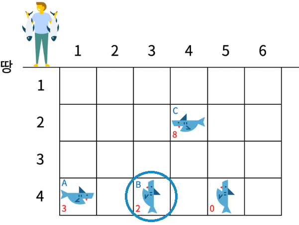 그 위치에 상어가 이미 있다면 크기가 더 큰 상어를 저장한다.