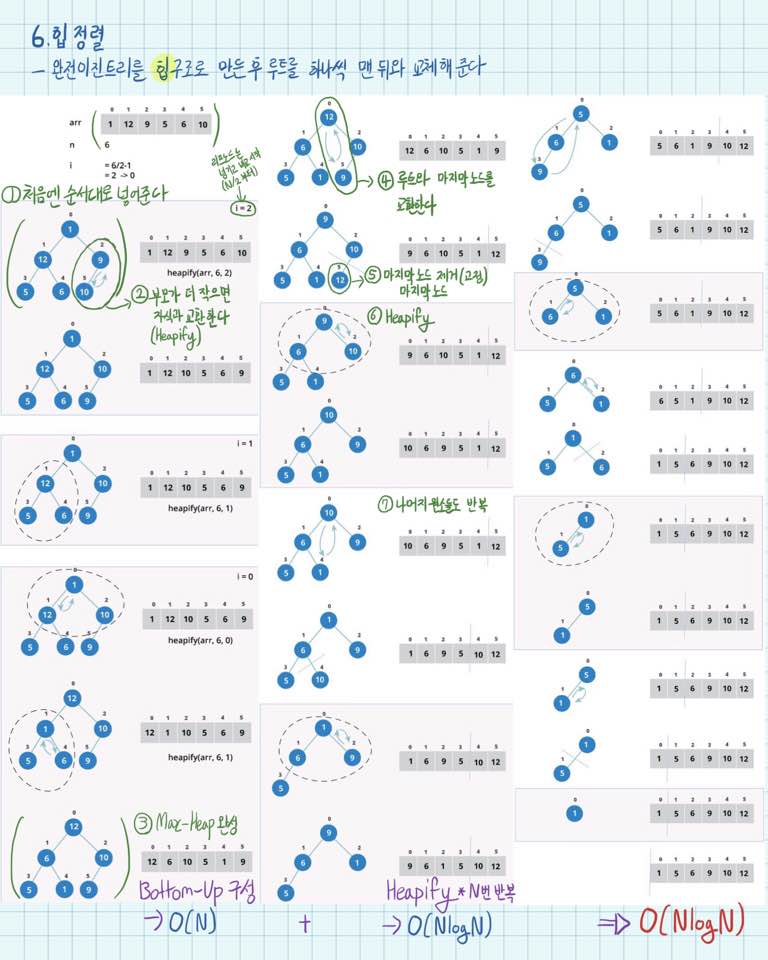 for (int i = (N - 1) / 2; i >= 0; i--) heapify(arr, N, i); //초기 최대 힙 구조로 만든다